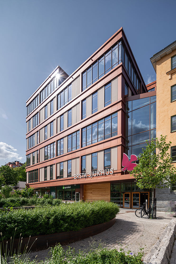 Au cœur de la capitale suédoise, sur l'île de Södermalm, le traditionnel Ersta Sjukhus a été agrandi par un nouveau bâtiment moderne. Situé directement sur la rue animée Folkungagatan, ce nouveau bâtiment allie une infrastructure médicale ultramoderne à un concept architectural sensible, au milieu d'un environnement urbain et avec des exigences élevées en matière de confort, de fonctionnalité et de calme.