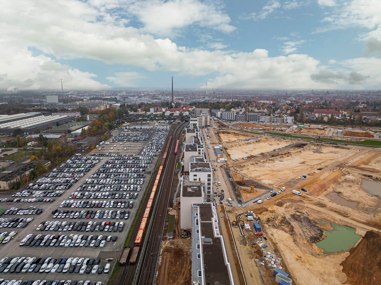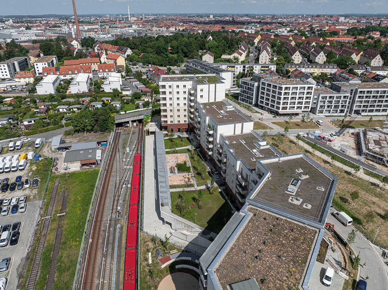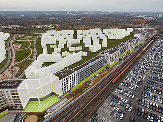 Le nouveau quartier urbain de Lichtenreuth à Nuremberg est construit sur une surface de conversion d'environ 90 hectares de l'ancienne gare sud. Avec ses 583 m, le projet est considéré comme le plus long chantier de construction de logements en Europe.