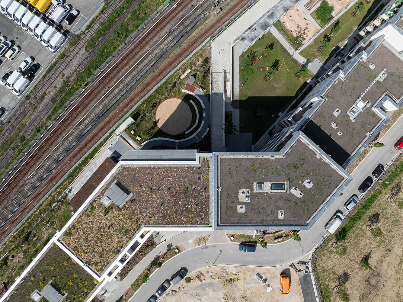 Malgré la proximité immédiate de l'infrastructure ferroviaire, cette solution permet aux futurs résidents de profiter d'un confort de vie élevé dans un emplacement central, sans vibrations ni nuisances sonores gênantes.