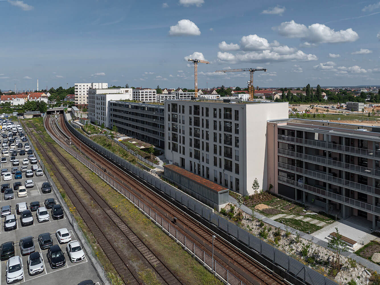 Malgré la proximité immédiate de l'infrastructure ferroviaire, cette solution permet aux futurs résidents de profiter d'un confort de vie élevé dans un emplacement central, sans vibrations ni nuisances sonores gênantes.