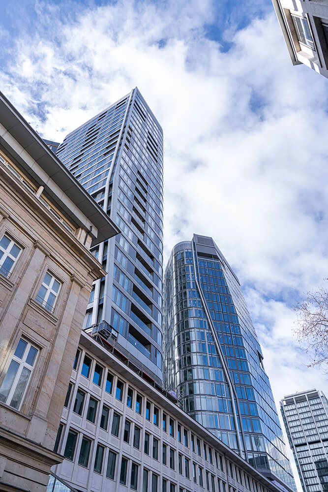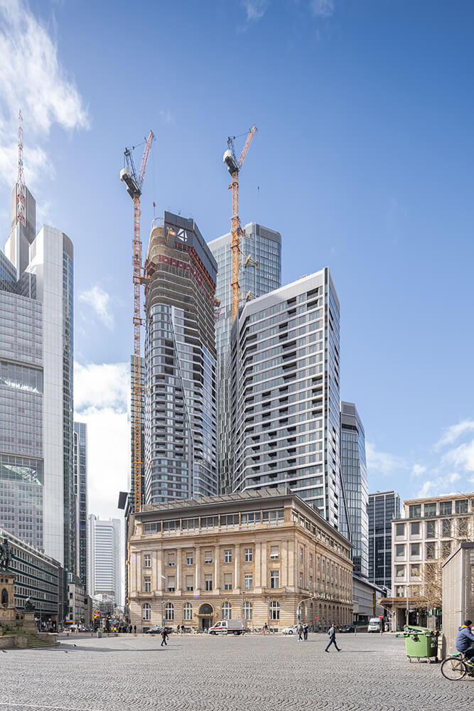 Le triangle de la Deutsche Bank, également connu sous le nom de FOUR Frankfurt, est un important projet immobilier au cœur de Francfort-sur-le-Main. Le projet comprend la construction de quatre tours remarquables qui marqueront de manière décisive le paysage urbain de Francfort avec des hauteurs de 233, 179, 128 et 104 mètres. La plus haute tour sera le troisième bâtiment le plus haut d'Allemagne et offrira en outre le plus haut étage utilisable de la ville de Francfort. La Deutsche Bank, l'une des plus grandes banques d'Allemagne, est à l'origine de cet ambitieux projet de construction. Les quatre gratte-ciel qui donnent leur nom à ce projet font partie d'un concept urbanistique plus large visant à renouveler et à enrichir le skyline de Francfort. Outre les tours, le projet comprend également des places publiques et des terrasses sur les toits, des espaces verts et des installations destinées à améliorer la qualité de vie dans les environs.