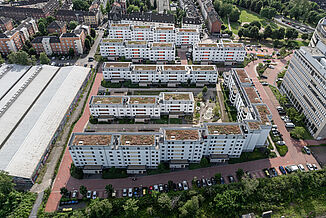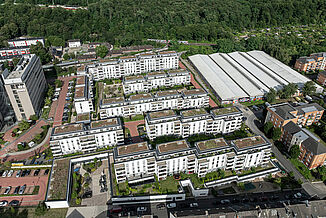 À Düsseldorf-Rath, les Arcadiahöfe constituent un quartier résidentiel tourné vers l'avenir, construit sur un site difficile au passé industriel. D'une superficie d'environ 24 000 m², ce terrain était autrefois utilisé par l'entreprise d'armement Rheinmetall et jouxte directement la ligne de fret ferroviaire Düsseldorf-Duisburg. Le site est ensuite resté en friche pendant de nombreuses années avant d'être réhabilité en un cadre de vie attrayant dans le cadre d'une réorientation urbanistique. Entre 2019 et 2021, le groupe immobilier Brune y a construit au total 23 immeubles modernes comprenant 212 logements. Le quartier est complété par une crèche, un parc, des aires de jeux et de rencontre ainsi que des installations pour les seniors, le tout à proximité immédiate de la forêt d'Aaper.