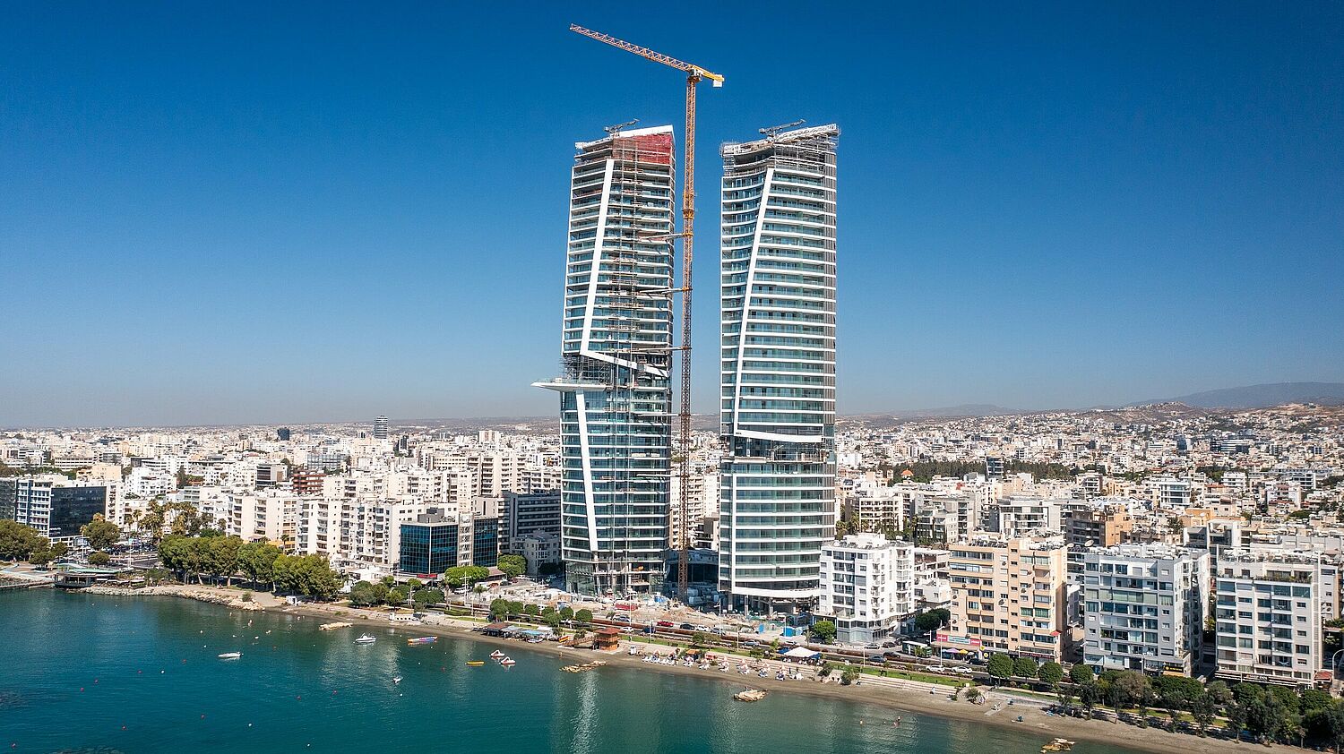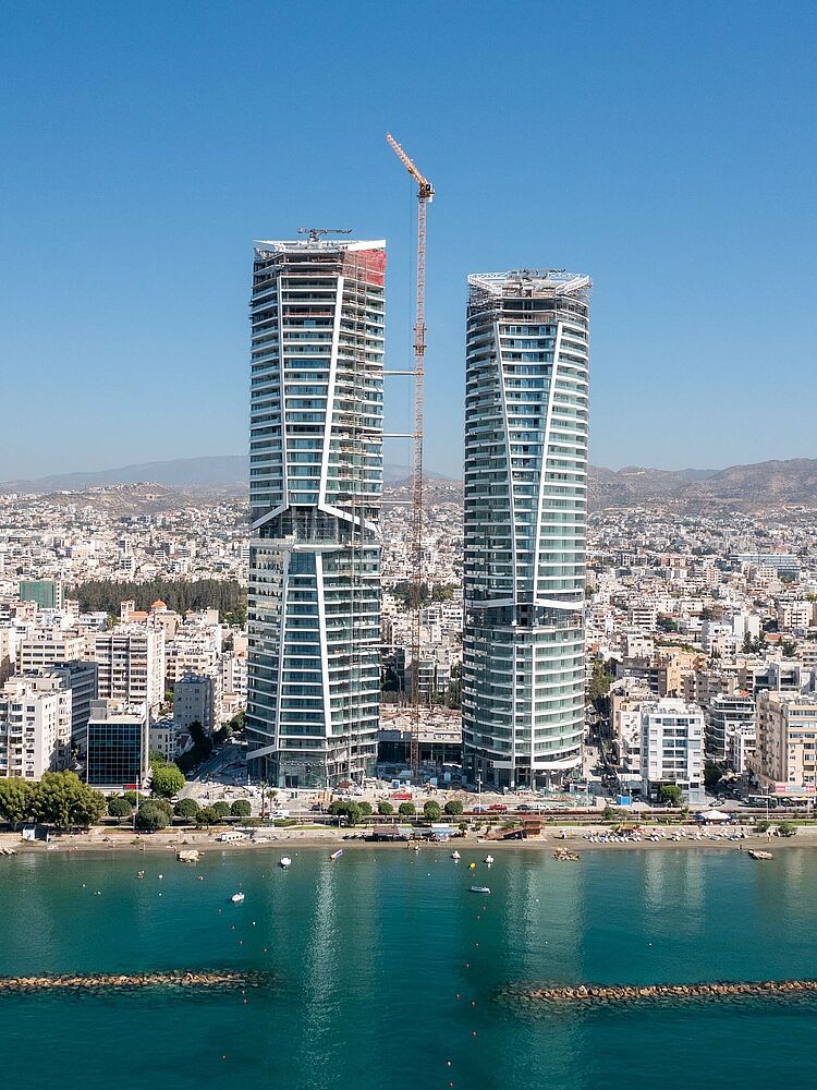 Les tours ouest et est se trouvent tout à fait à l'avant, face à la mer. La tour nord s'élève en retrait du sol. Le vaste espace entre les tours constitue ce que l'on appelle l'oasis et la plaza. Pour les habitants des tours, l'oasis est exactement ce que son nom laisse présager : Un espace de détente. Outre des zones de repos et des piscines à la végétation luxuriante, des terrains de sport sont à disposition. La Plaza, à l'avant en direction de la plage, est également un lieu de rencontre animé et offre, avec un grand choix de restaurants, de bars et de cafés, tout ce qui enthousiasme les amateurs de cuisine. Le centre de Limassol se trouve également à quelques pas. Les utilisateurs des tours bénéficient donc non seulement d'une situation calme au bord de la mer et d'un approvisionnement optimal directement devant la porte, mais aussi d'une proximité immédiate avec la ville.